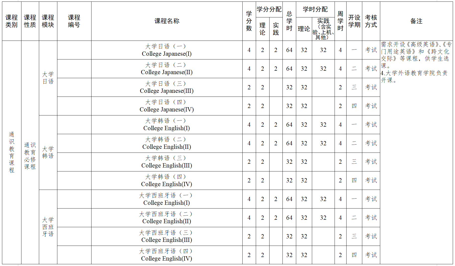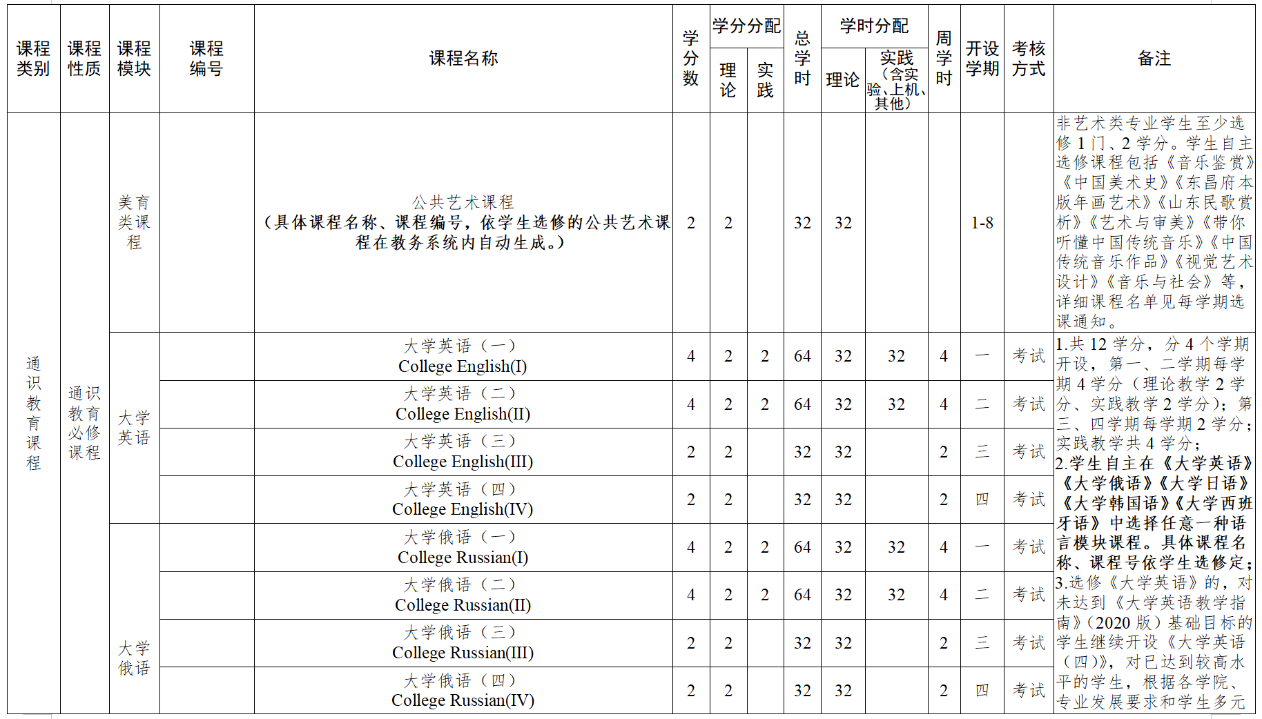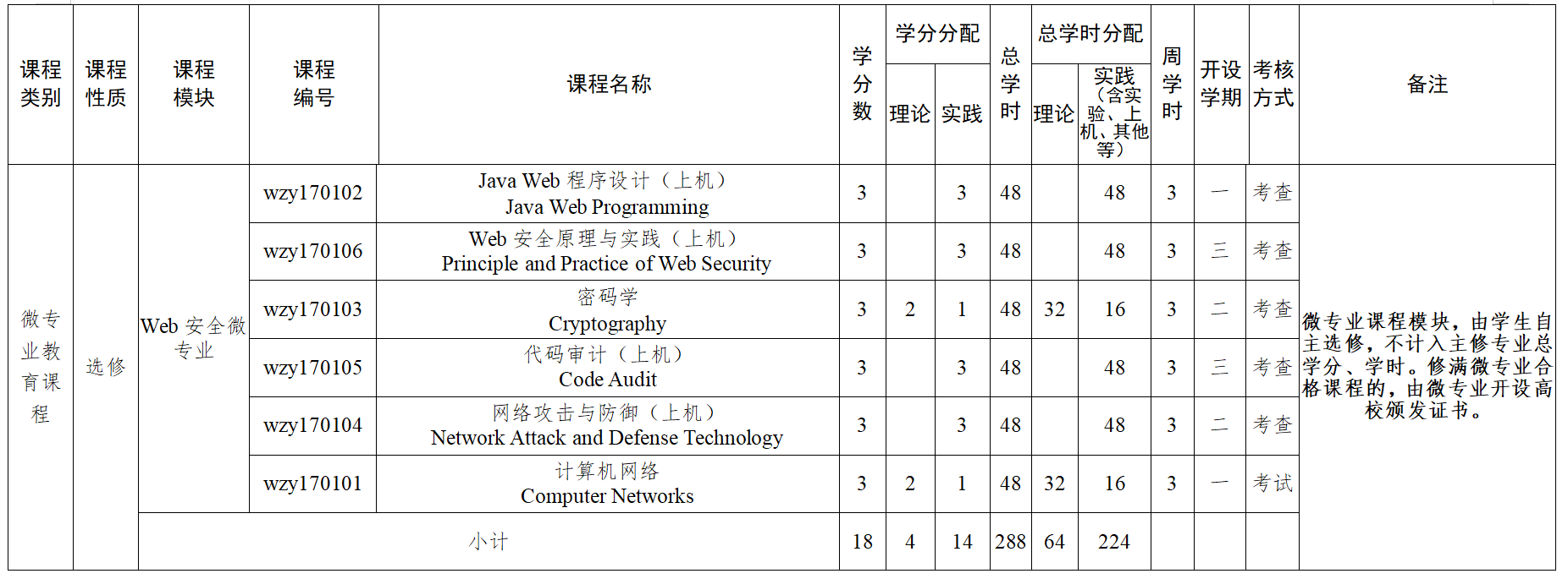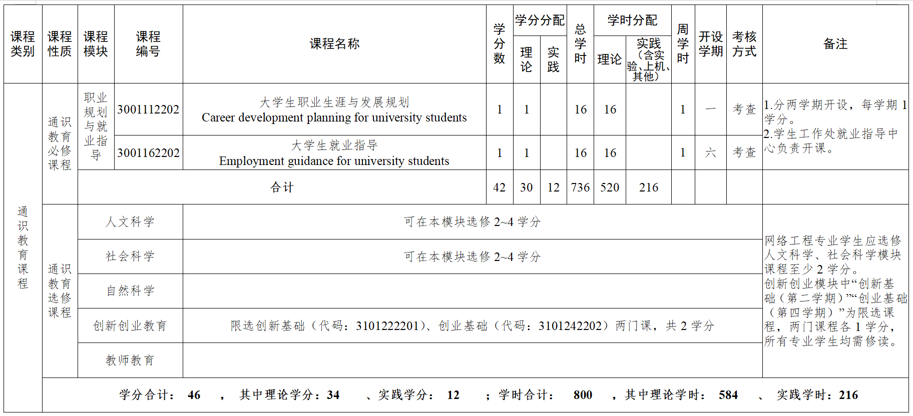 注:1. 大学生参与专业科研实验、论文撰写、专利开发、创业实践、各类学科竞赛活动并取得一定成绩或成果,认定相应学分,可充抵专业选修课程学分,最高不超过6学分,具体要求和学分认定办法,按学校有关规定执行。经省级以上主管部门组织考核并获得相应职业技能等级证书,按级别高低分别计2~4学分,对应的课程可申请免修。免修课程的学分认定由各永利确认,报创新创业永利审核,教务处备案。