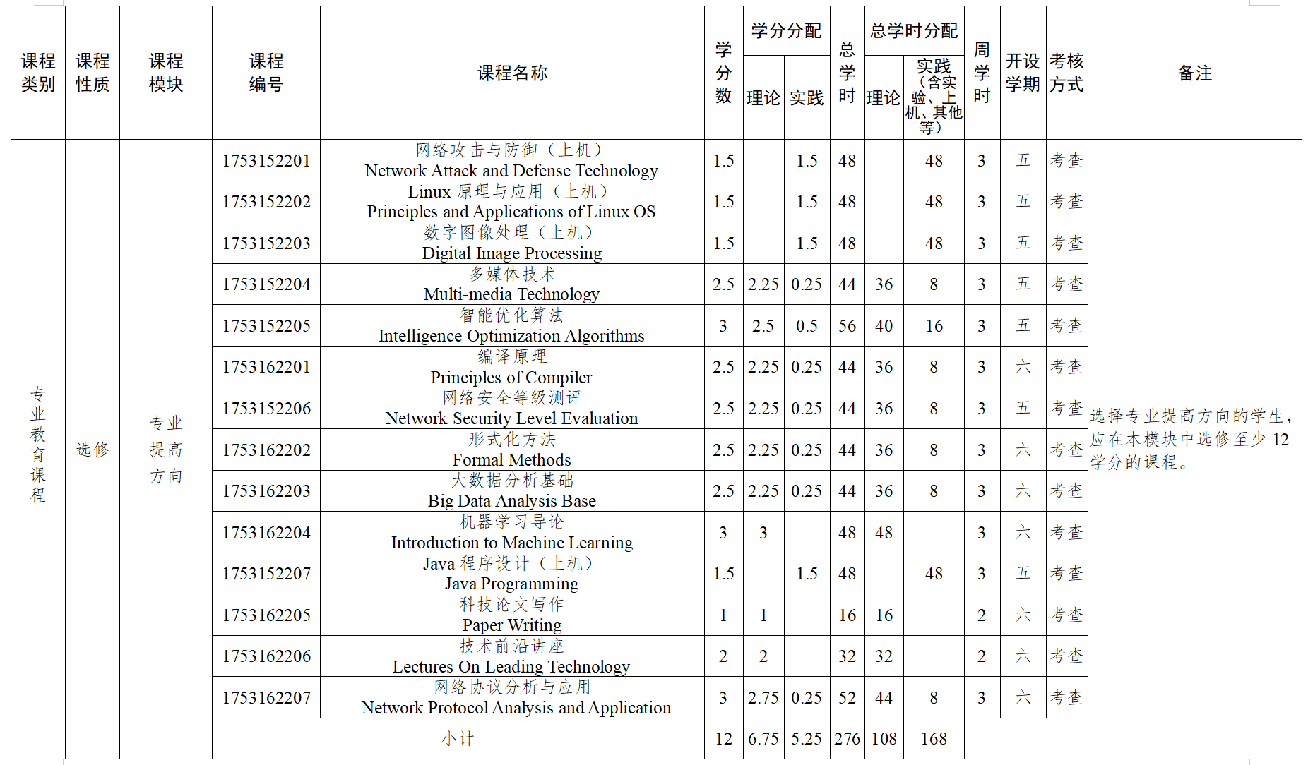 专业教育选修课程