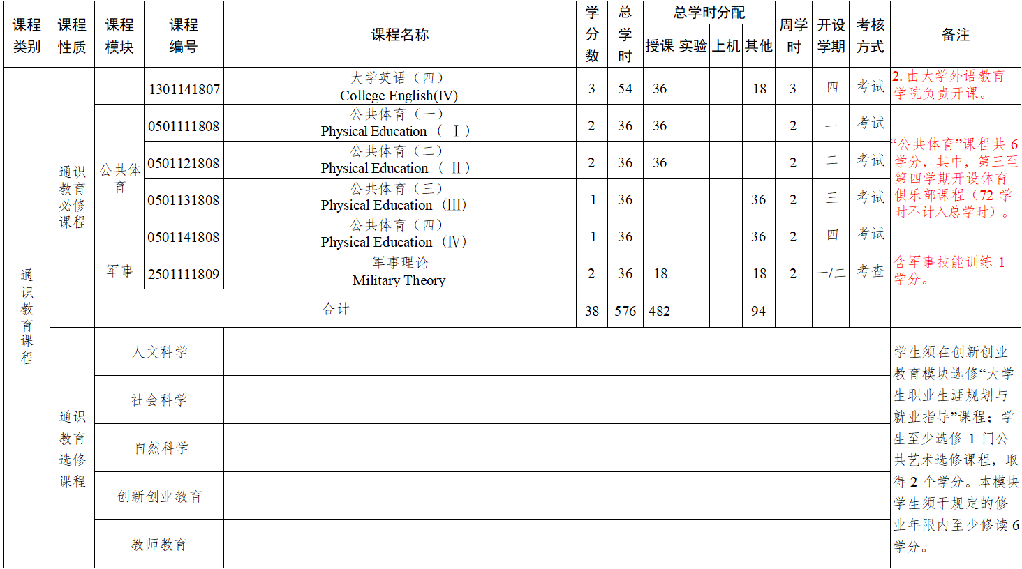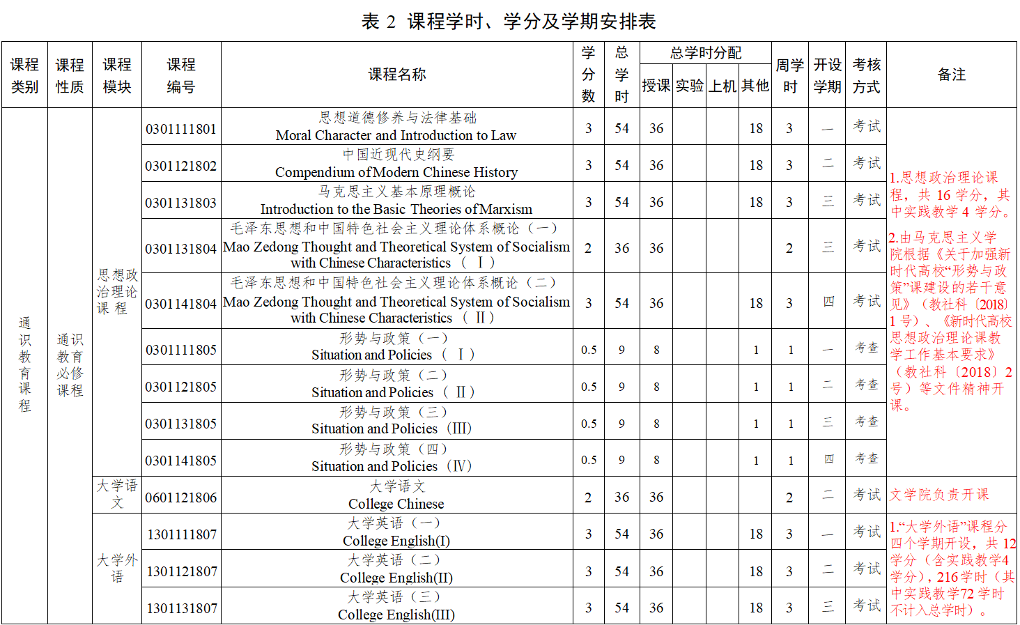 五、课程的学时、学分及学期安排(见表 2)