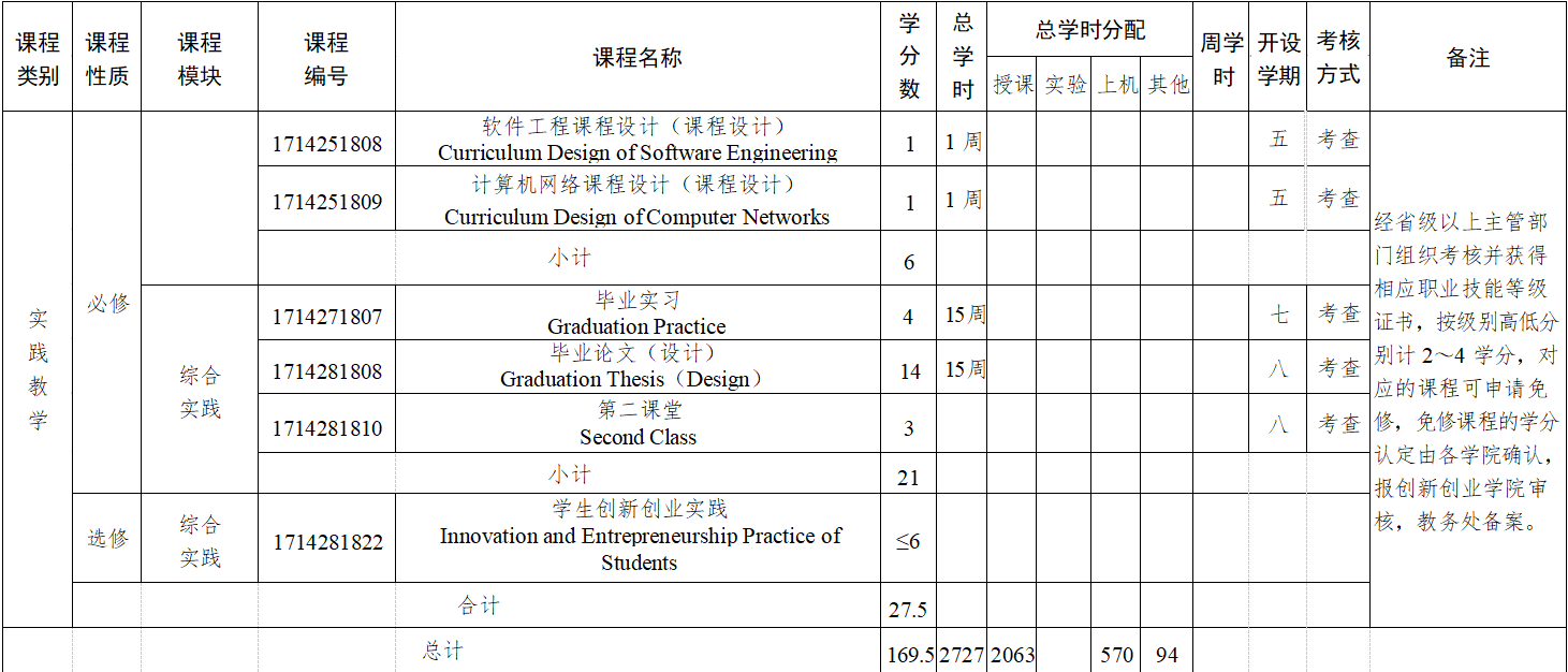 包括专业课程上机实验及课程设计、军训、课程设计、专业实习、毕业设计(论文)等。