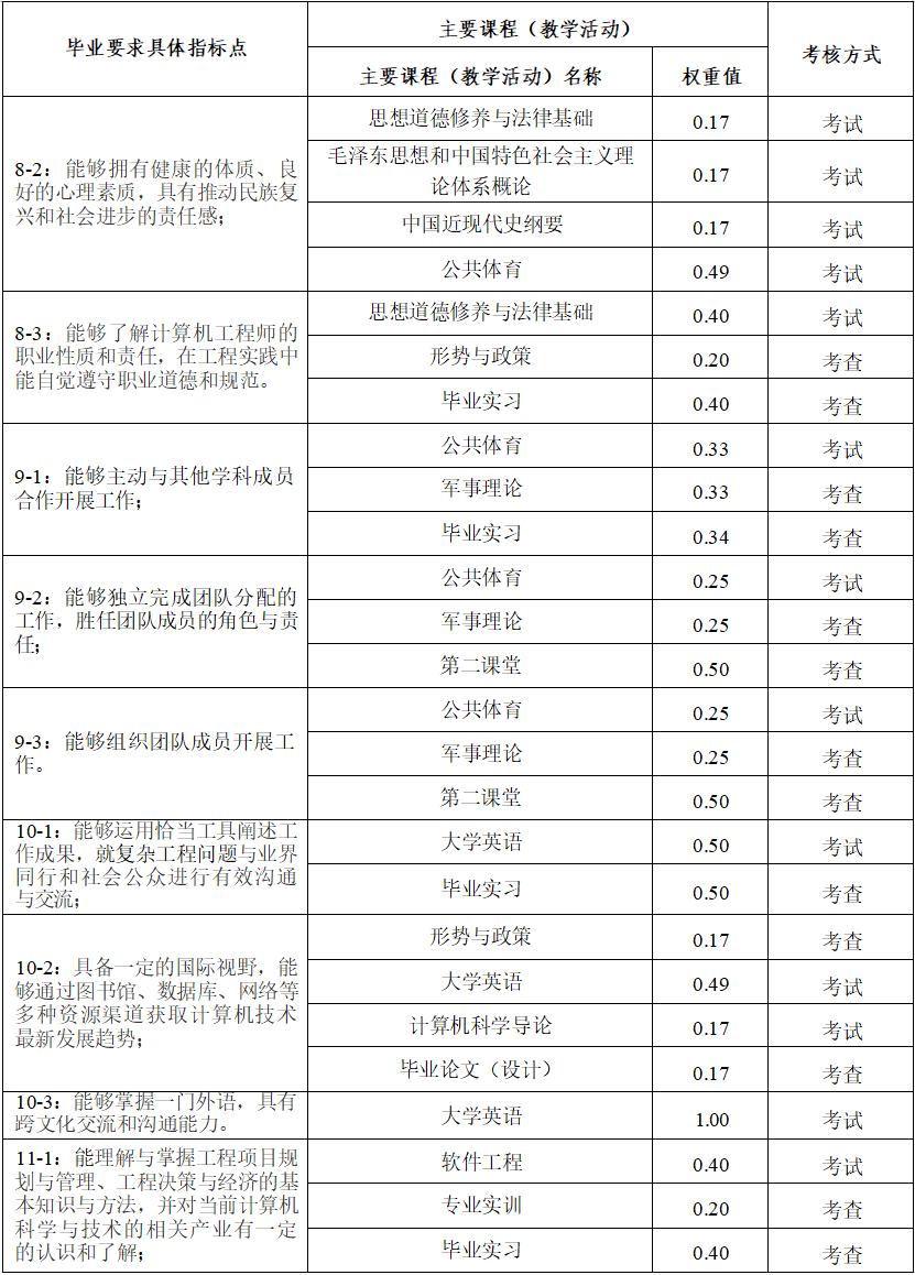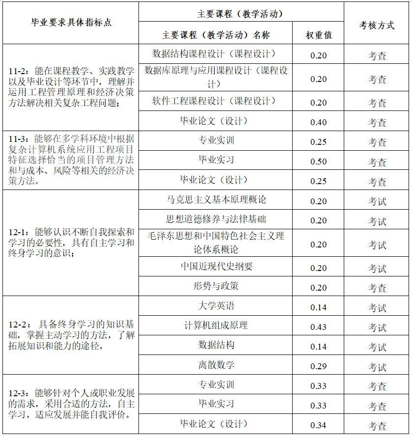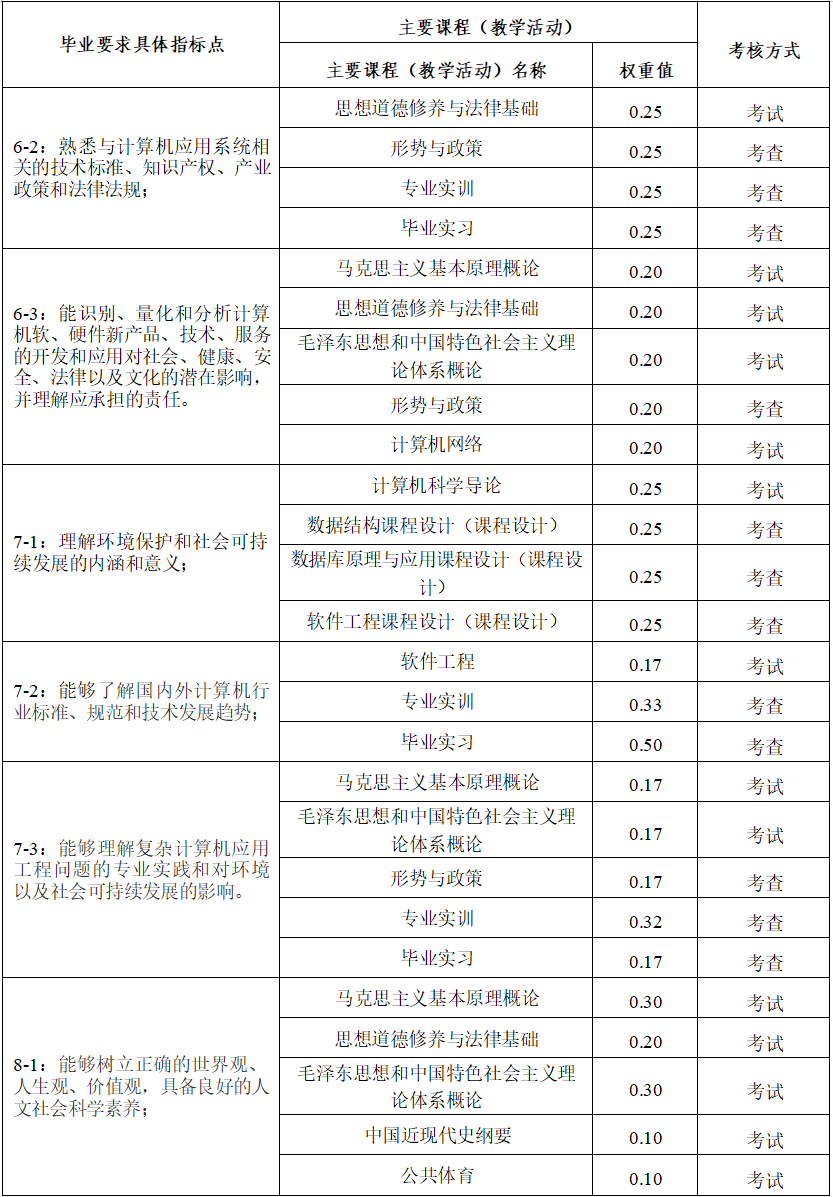 (三)毕业要求对培养目标的支撑