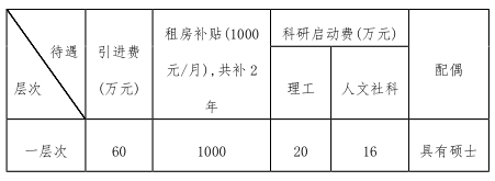 注:高层次人才除全职引进外,还可以柔性引进,具体待遇视在校工作时间、工作业绩等商定,“一人一策、一事一议”。